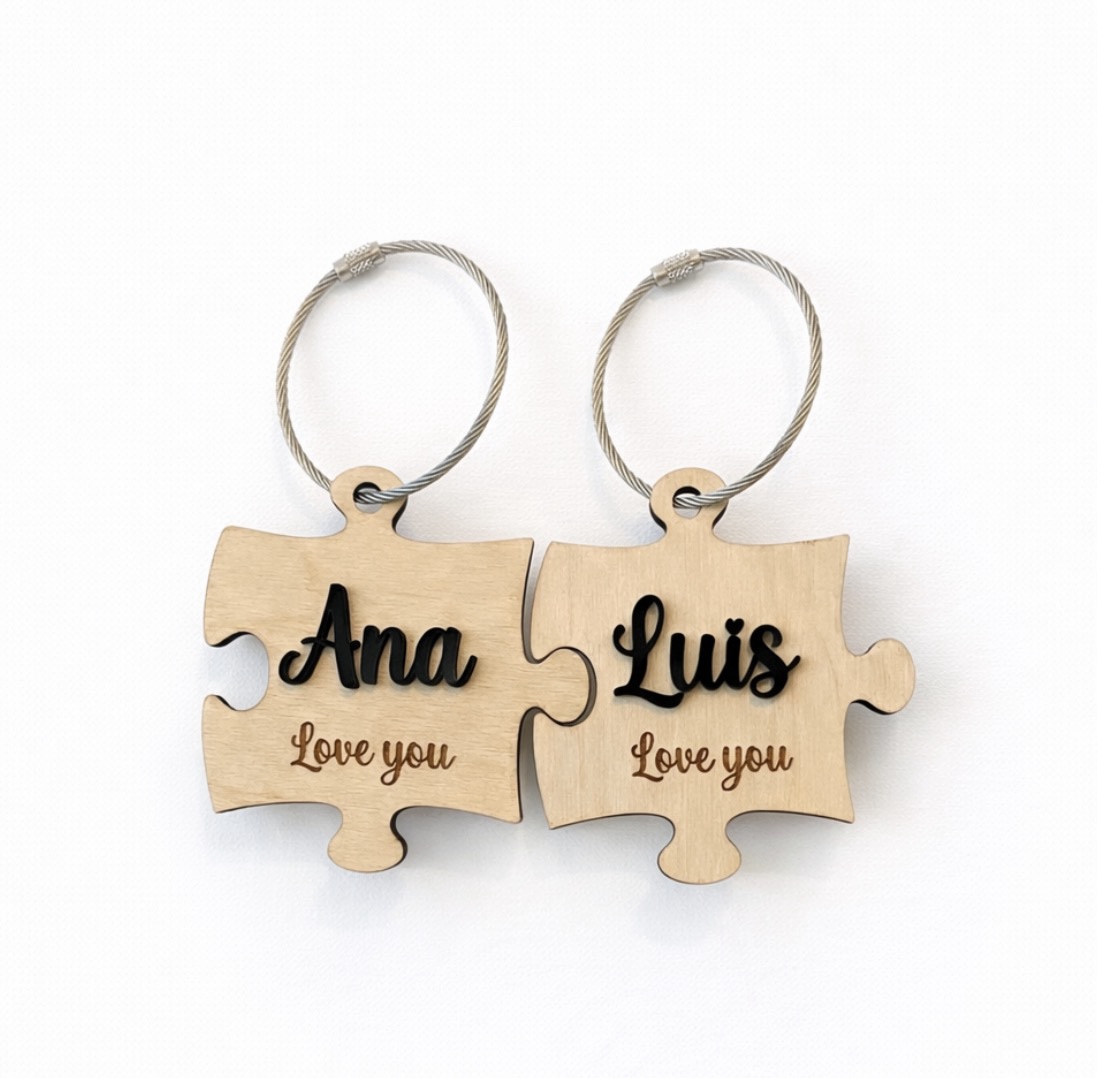 Set de llaveros en forma de piezas de rompecabezas, ideales para él y para ella.